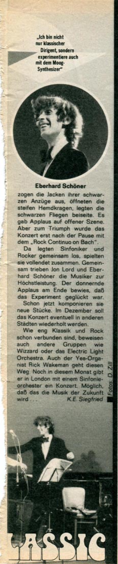 Hi Frank! Danke für Deine rasche Antwort! Aber hier irre ich sicher nicht ! Das Konzert, das Du meinst war die unter "Windows" bekannte Aufführung (besser ist natürlich "Continue on Bach"!) und fand am 1. Juni 1974 in München statt! Es gab jedoch bereits am 4. Jänner 1972 eine Live Aufführung in München (wurde damals mitgefilmt und diese Filmaufnahmen verschwanden irgendwie im schwarzen Loch!) Und schließlich gab's im Oktober 1973 die besagte Aufführung in München mit Eberhard Schöner, von der es ein Vinyl-Boot gibt - ich vermute da ganz stark, daß die Musiker der Spencer Davies Group maßgeblichen Anteil hatten, da sie gerade auf großer Reunion Tour durch Europa waren. Also zusammenfasend: Natürlich würden mich beide Aufnahmen interessieren - die von 1972 und die von 1973! Kann man auch alles zusammengerafft unter Jon's Bio im Highwaystar verfolgen - allerdings sehr lückenhaft! Jeder Hinweis wird dankbar angenommen ! Grüße aus Wien Michael
