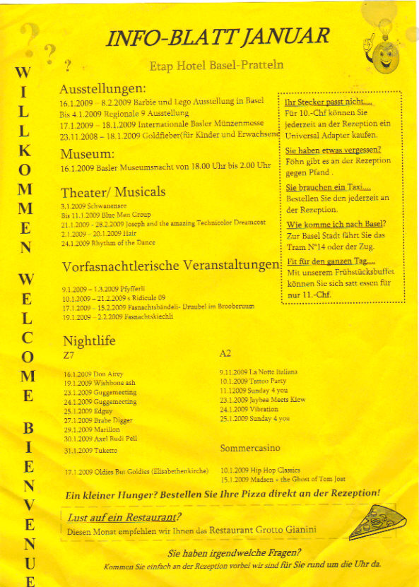 Also gegen 14:30 bestieg ich den ICE in Frankfurt am Main. Typisch für die Deutsche Bahn, machten wir im Raum Aachen 1 Stunde Verspätung. Ich hatte Angst dass ich kein Platz mehr in der ersten Reihe bekommen würde. Also gegen 19 Uhr kam ich in Basel SBB an. Fuhr mit der Bahn nach Pratteln und mit dem Taxi ins Hotel. Nach dem Einchecken lief ich im Eiltempo zur Konzerthalle.