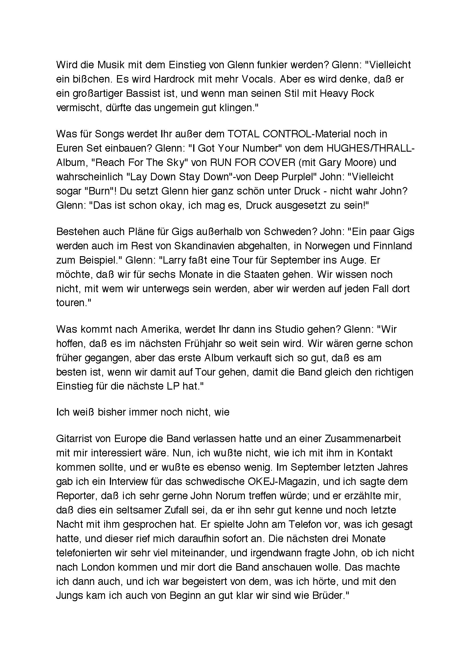Eine Seltenheit aus den 80ern - ein Interview mit Glenn. Es stammt aus der Zeit, als er mit John Norum in Schweden gearbeitet hat.