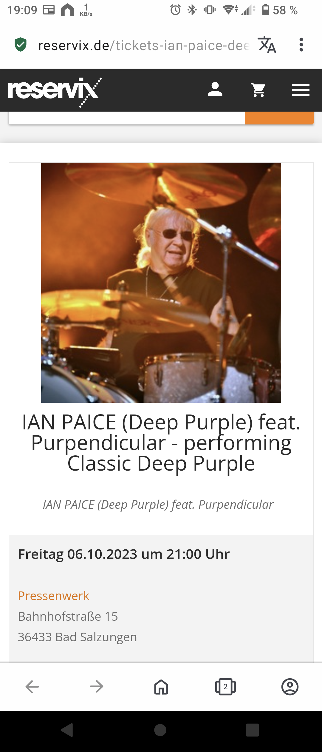 Purpendicular treten mit Ian Paice am 02. September '23 im Leipziger "Anker" auf.