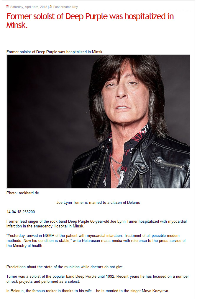 Joe Lynn Turner in Minsk im Krankenhaus (Herzinfarkt)?