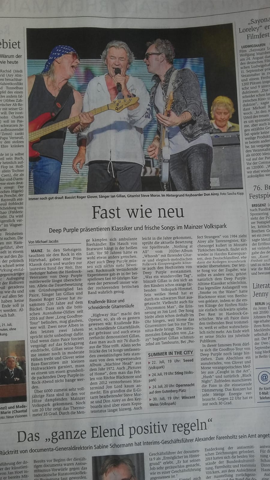 Alles in allem ein Konzert das mir ewig in Erinnerung bleiben wird. Es waren die Umstände des Tages und die besonderen "Ängste" der Pandemie mit Konzertpausen etc. und natürlich mit Simon, welcher aktuell Deep Purple phantastische Energie einhaucht.