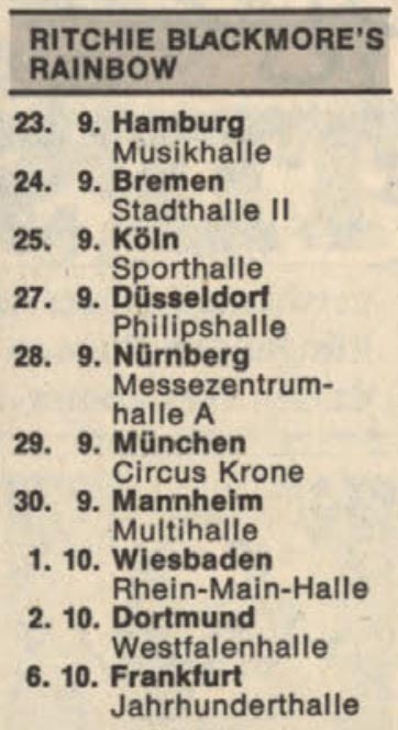gibt es verlässliche Quellen, außer Bootlegs, die belegen, daß Rainbow am 28.09.1976 tatsächlich in Nürnberg/Messezentrum gespielt haben und nicht im benachbarten Erlangen?