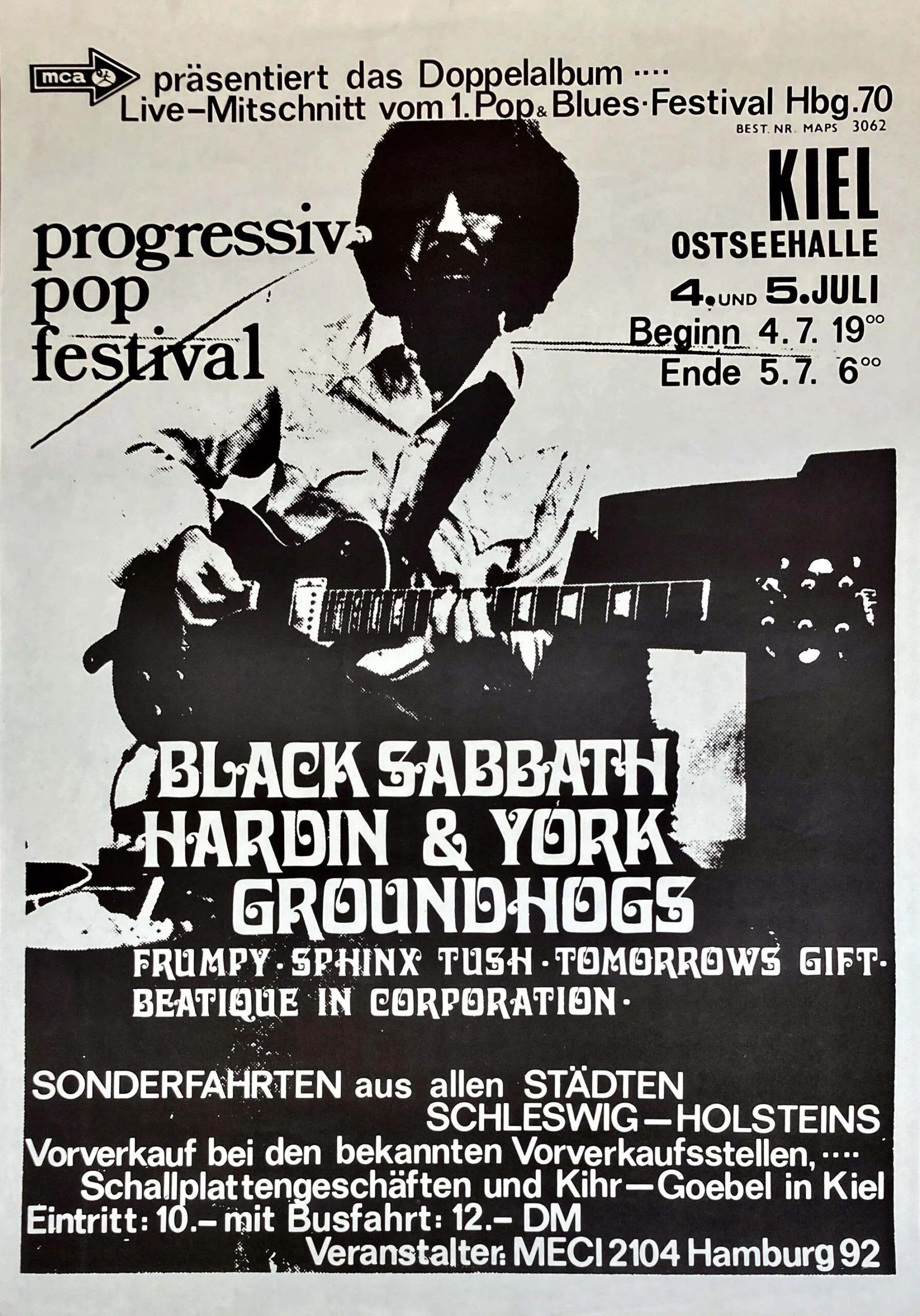 Heute vor genau 55 Jahren am 5. Juli 1970 sielte Black Sabbath in Originalbesetzung in Kiel, Schleswig-Holstein.