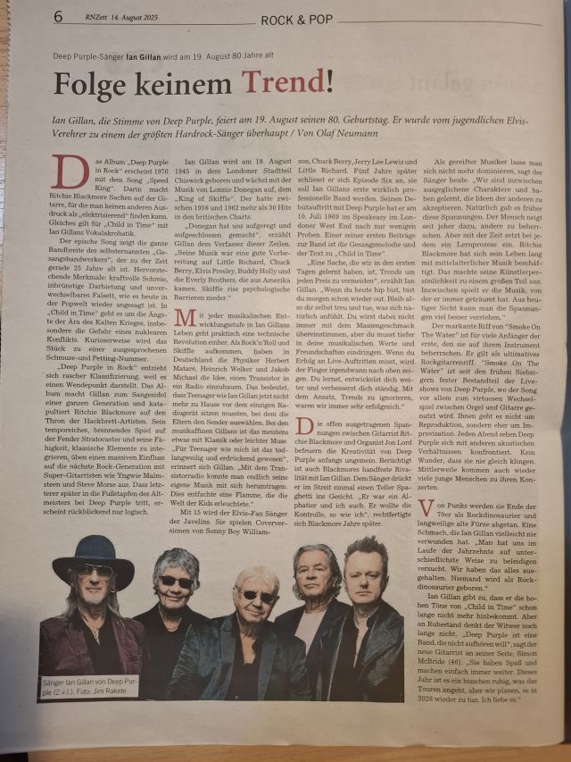 Ich habe mir zu Big Ians Ehrentag wieder einmal "Deep Purple In Rock" angehört. Wahnsinn, die Aufnahmen sind nun schon 55 Jahre alt und mich begleitet die LP nun auch schon seit weit über 40 Jahren. Aber die Songs und die Performance werden einfach nicht älter und fesseln mich noch wie beim ersten Hören. Das klingt für mich einfach zeitlos.