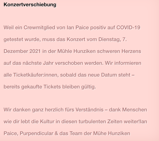 Aber ich hab keine Lust mehr, auf die Impfunwilligen Rücksicht zu nehmen, sollen die doch dann tatsächlich zu Hause bleiben..... und ich geh wieder auf Konzerte und ähnliches -