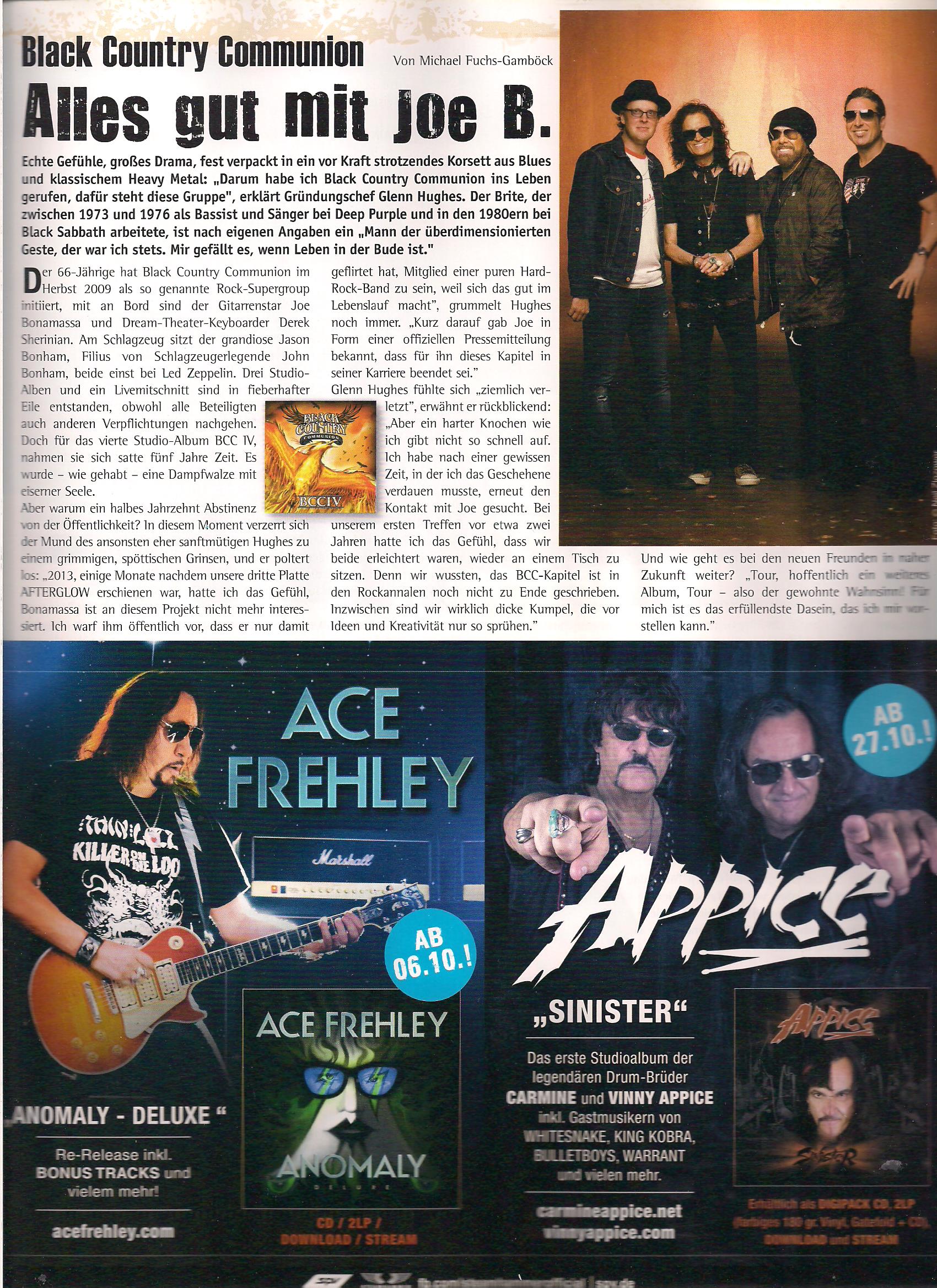 Die Rezension von BCC IV lautet wie folgt: "Der Start des neuen Albums des Quartetts Black Country Communion klingt geradezu programmatisch: Erst wird mit Gitarre (Joe Bonamassa), Bass (Glenn Hughes) und Schlagzeug (Jason Bonham) gewaltig gewuchtet, dann streut Keyboarder Derek Sherinian unter Hughes mächtiger Stimme kurze ruhige Passagen ein - das Ganze ist passend "Collide" betitelt. Oder "The Last Song For My Resting Place", das mit Mandoline startet, nicht nur durch die Fiddle keltisch anmutet. Und der Wechsel zwischen brachial und zurückgenommen zieht sich praktisch durch alle Songs. Dabei sind es die immer wieder zu entdeckenden kleinen Instrumentalfacetten, die der CD besondere Reize verleihen. BCC sind auf ihrem vierten Album nicht auf Nummer sicher gegangen, indem sie sich wiederholen, sondern überraschen oft. Hard Rock, der neben dem Mainstream hertönt".