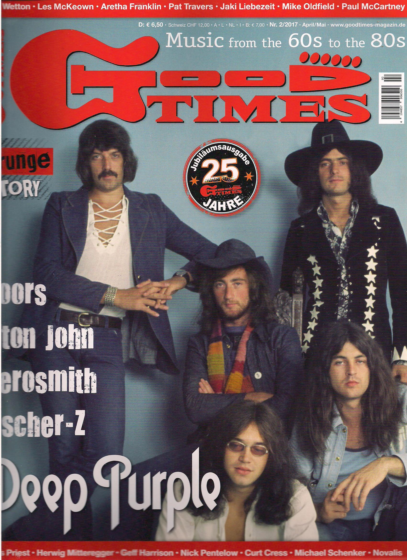 Die neueste Ausgabe von "Good Times" hat Deep Purple eine Titelgeschichte gewidmet - sehr angemessen für die Ausgabe, in der das 25-jährige Jubiläum dieses Blattes gefeiert wird. Aber was steht drin? Der Hauptteil besteht aus einer an den Alben orientierten DP-Geschichte bis 1993. Jens Uwe Berndt schreibt einige ganz interessante, wenn auch nicht wirklich bis zum Letzten durch den Realitätscheck abgesegnete Notizen über die Mark I-Ära. Das, was über die Mark II-Ära drinsteht enthält für einen Fan kaum Neuigkeiten, aber einige Stereotype (Vorsicht! Journalist) die man mal schnell aus irgendeiner Schublade entnimmt (um sich die Arbeit wirklicher Recherche zu ersparen), die aber deshalb noch lange nicht wahr sind. Offenbar hat sich in den Köpfen vieler Rockmusik-Journalisten unausrottbar festgesetzt, dass man Hard Rock und Heavy Metal als synonyme betrachten muss. So heißt es über "Deep Purple in Rock": "Und es wurde Hard Rock, denn der Begriff Heavy Metal hatte zu dem Zeitpunkt noch nicht die allgemeine Runde gemacht." Alles schön in einen Topf und dann munter verrühren, Hauptsache es kommt ein schmissiger Artikel dabei heraus. Schon für das Gründungsmitglied Paicey bedeutet diese Gleichstellung meines Erachtens eine Beleidigung. Diesem begnadeten Swing-Drummer (der, nebenbei bemerkt, eine Zierde für sämtliche Bigbands dieser Welt wäre) zu unterstellen, er sei auf dieselbe Stufe zu stellen wie die zuweilen recht stupiden Heavy Metal Drummern mit ihrem dumpfen Bumbum, ist schlicht eine Frechheit!